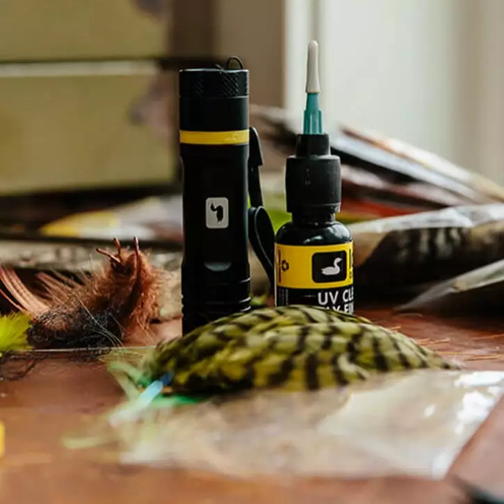 This powerful UV light is perfect for curing Loon’s UV resins. A push-button on/off and a powerful beam makes quick work of curing UV resin so you can tie more and fish more.  One AA battery included.