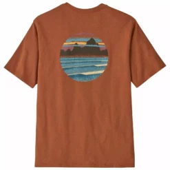 Imagine the Fitz Roy skyline at sunset with stacked sets marching in: The Skyline Stencil graphic is screen-printed on a tee made of 100% postconsumer recycled fabric. By utilizing fabric scraps and recycled bottles, we reduce our reliance on virgin raw materials. Fair Trade Certifiedâ„¢ sewn.