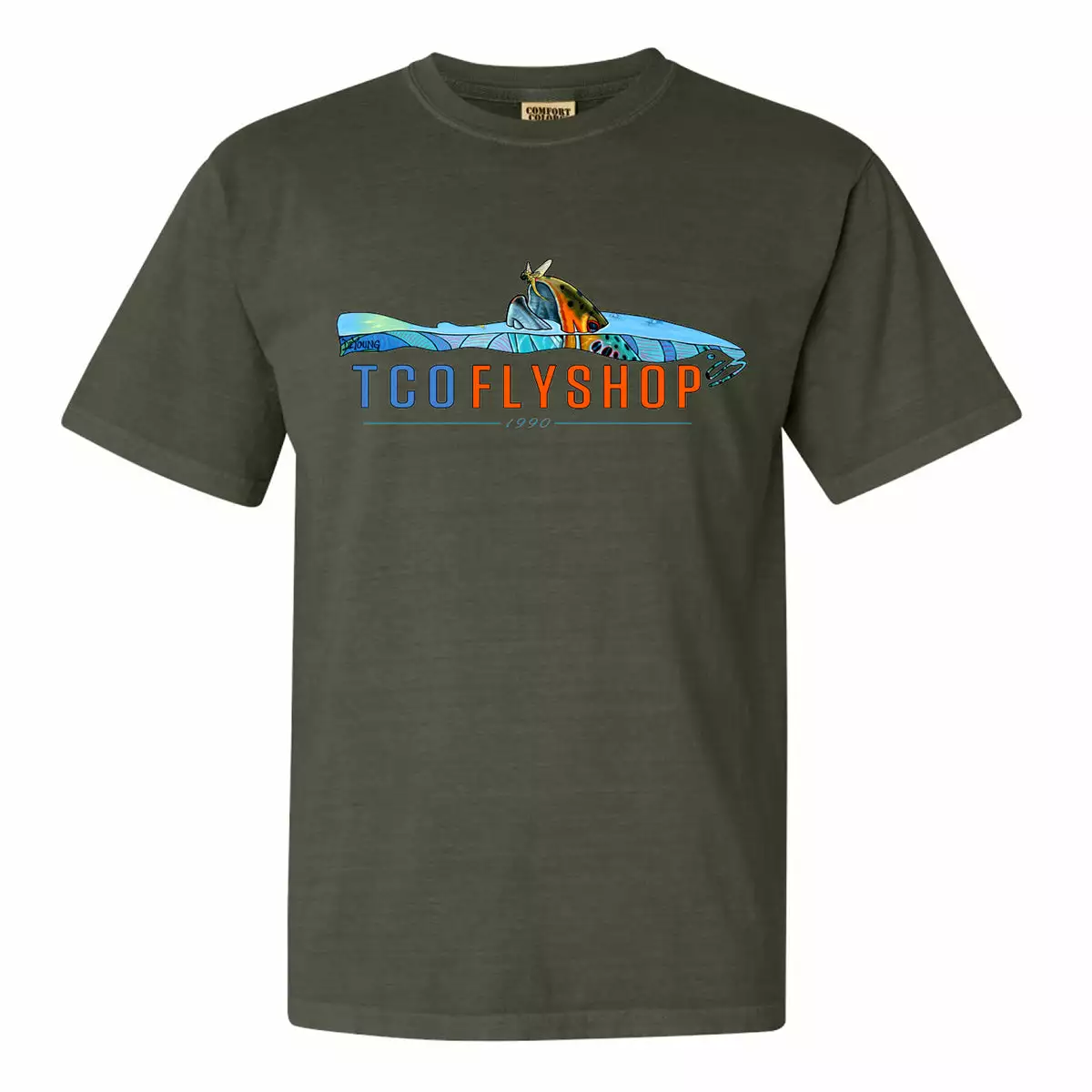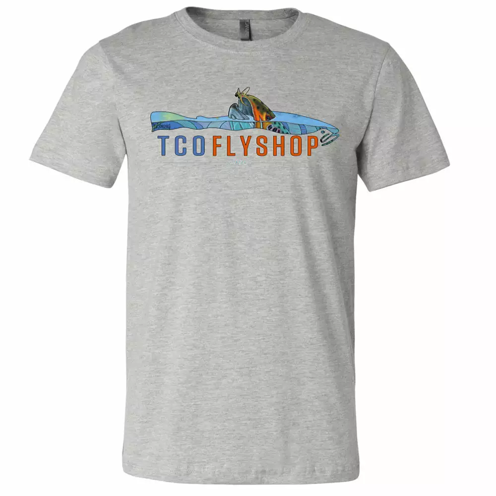 Derek DeYoung has been a great friend for over 10 years… and his artwork has inspired many cool designs from TCO. The latest is a collaboration of his Rising Brown Trout print and our TCO Logo. Together they make the perfect T-Shirt! Also, check out ourÂÂ